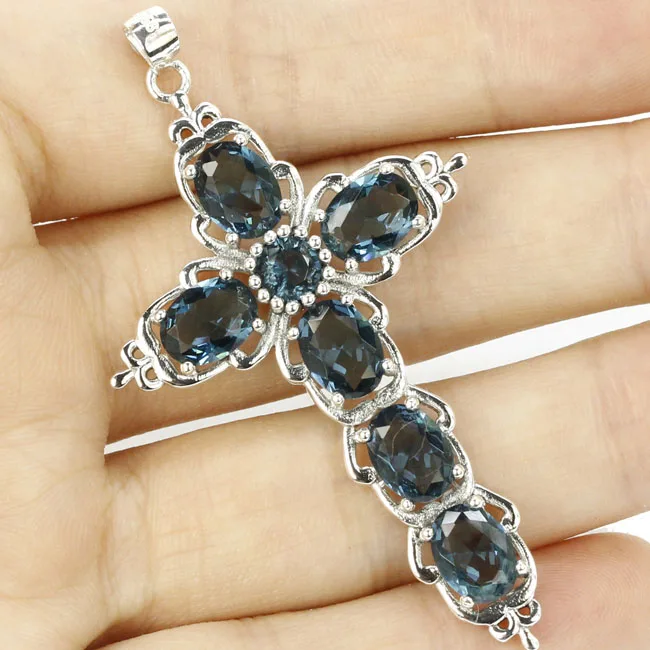 SheType 5,8 Г длинный крест Аквамарин подарок для человека серебро 925 пробы подвеска 51x35 мм