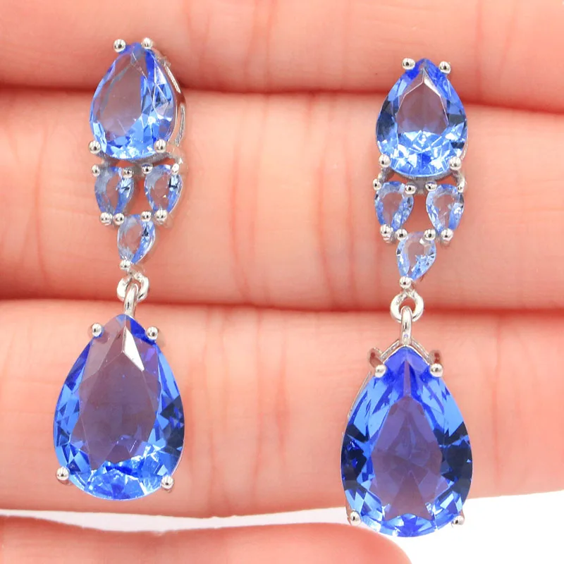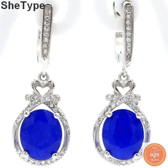 35x13 мм SheType Pretty 7,3 г настоящий синий сапфир Белый CZ Дамские серьги из стерлингового серебра 925 пробы