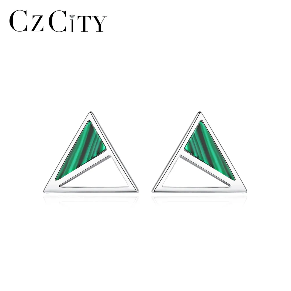 CZCITY Новый Настоящее серебро 925 проба Бирюзовый создан треугольные серьги-гвоздики серьги для женщин ювелирные украшения букле D'Oreille подаро...