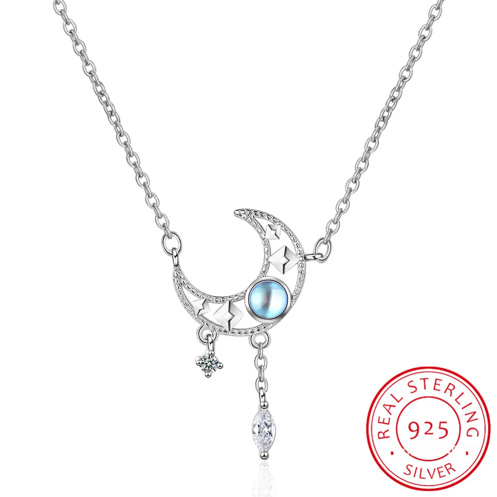 Сладкий 925 пробы серебряный с лунным камнем Звезда Луна кисточкой ожерелья для женщин чокер ожерелье воротник de Prata Свадебные украшения