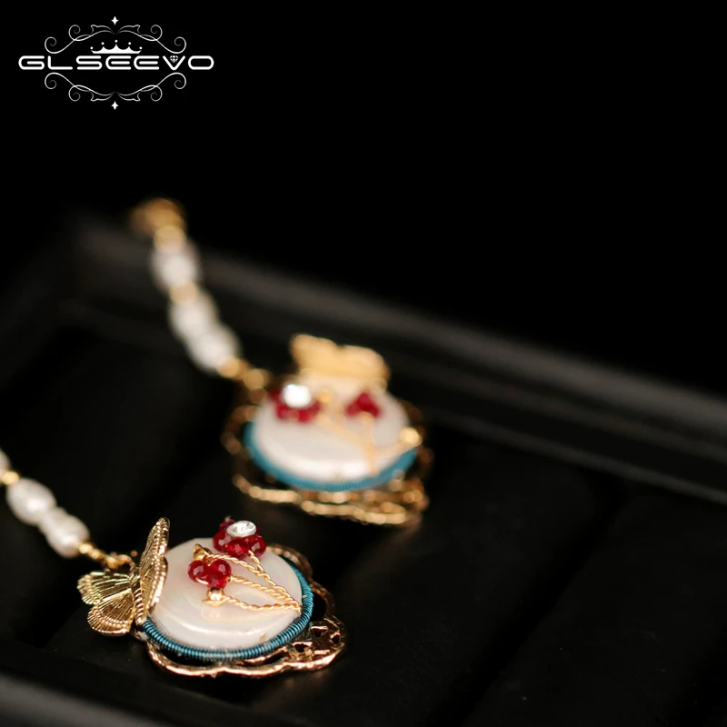 GLSEEVO натуральный пресноводный жемчуг Висячие серьги для женщин барокко Жемчуг бабочка серьги ручной работы ювелирные изделия GE0874