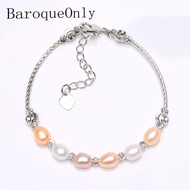 Женский браслет с натуральным пресноводным жемчугом BaroqueOnly, браслет из стерлингового серебра 925 пробы с цветным жемчугом