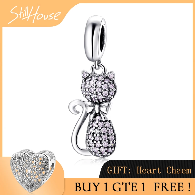 DIY серебряный шарм, подходит для оригинального браслета Pandora, бусины, 925 пробы, серебро, любовь, подвески, розовый сверкающий CZ, элегантный бусина "Кошка"
