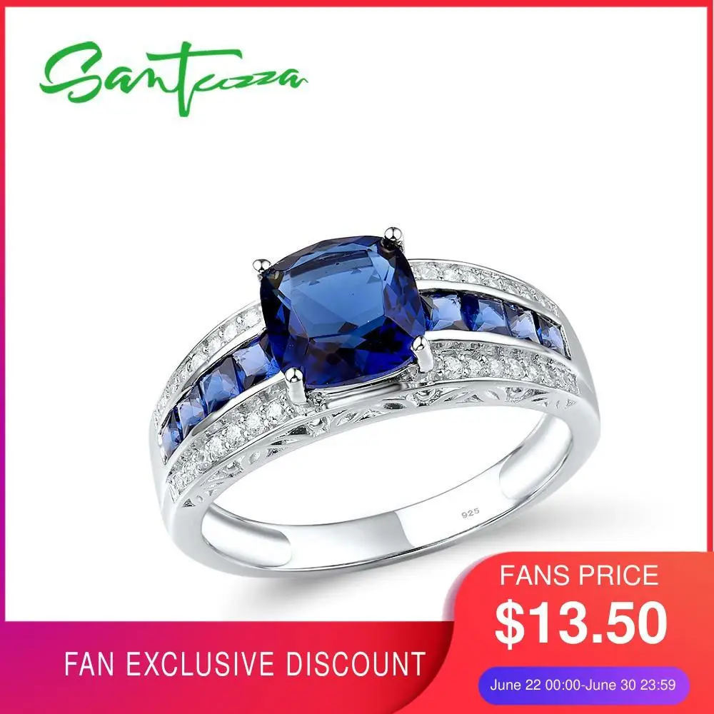 Женские серебряные кольца SANTUZZA, из чистого серебра 925 пробы, гламурные голубые Свадебные аксессуары с камнями, ювелирные украшения