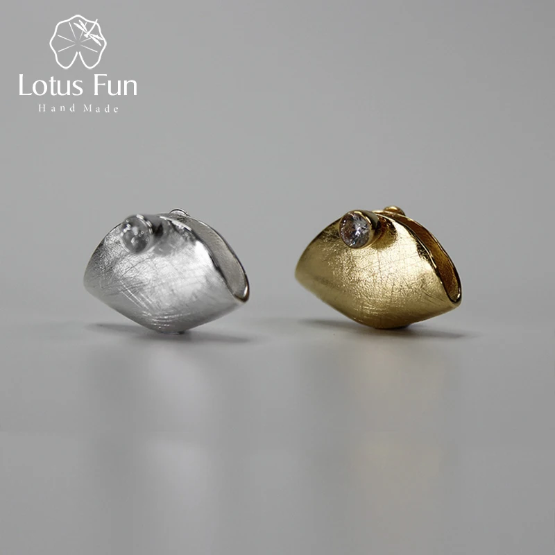 Lotus весело Настоящее стерлингового серебра 925 природных циркония ручной работы Ювелирные украшения Творческий Сумочка Дизайн Серьги-гвозд...