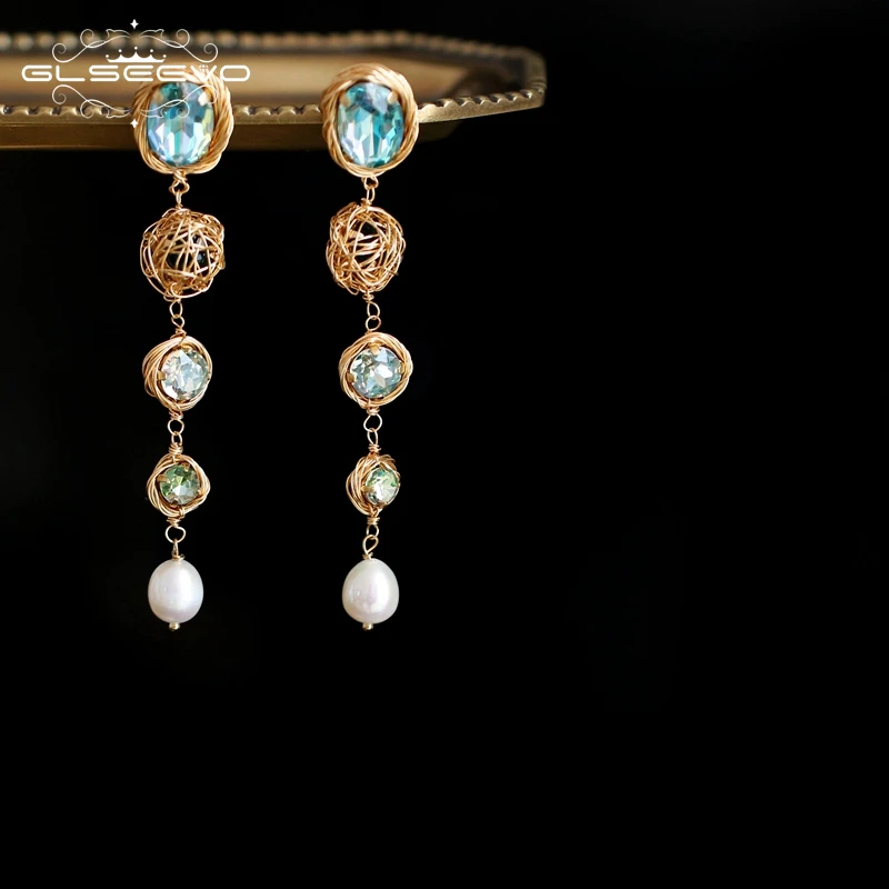 Женские серьги-капельки GLSEEVO, серьги ручной работы из натурального пресноводного жемчуга с цветным камнем для свадебной вечеринки, GE0723