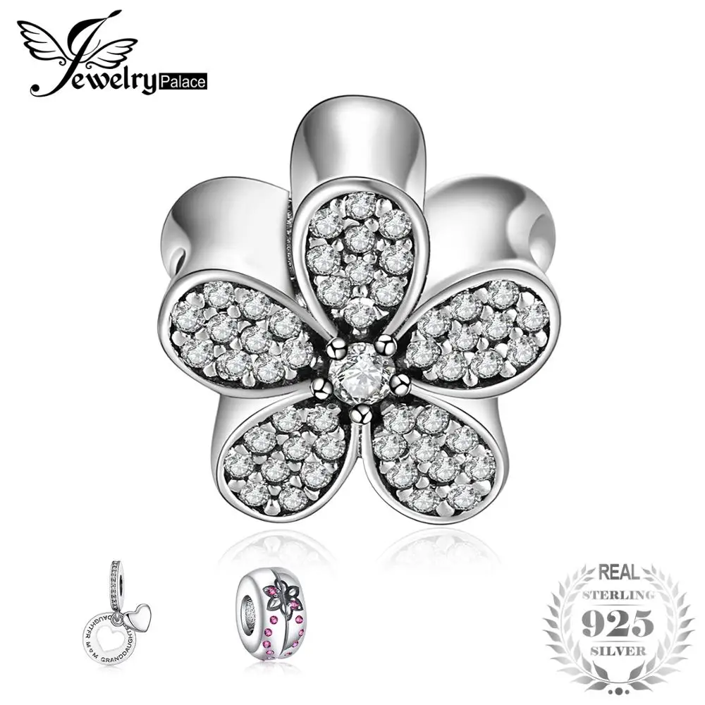 Jewelrypalace стерлингового серебра 925 мерцающий цветок кубического циркония Мурано Стекло розового золота бисер Подвески Fit Браслеты