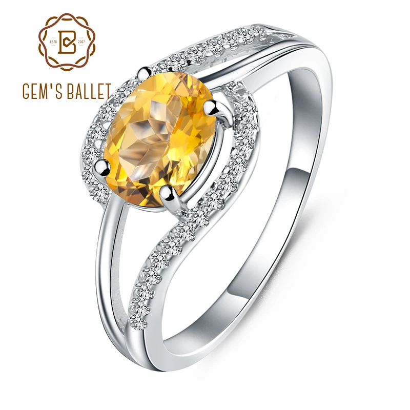 Женское балетное кольцо GEM'S, роскошное кольцо из стерлингового серебра 925 пробы с натуральным цитрином, свадебные ювелирные украшения, 1.30Ct