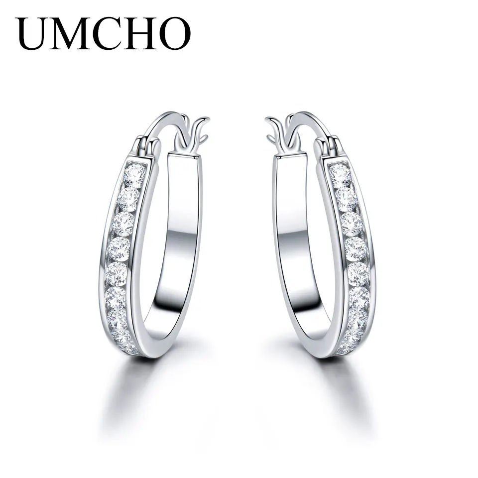 UMCHO 925 Серебряные Клипсы Серьги для женщин драгоценный камень, фианит Свадебные украшения для помолвки подарок на день Святого Валентина