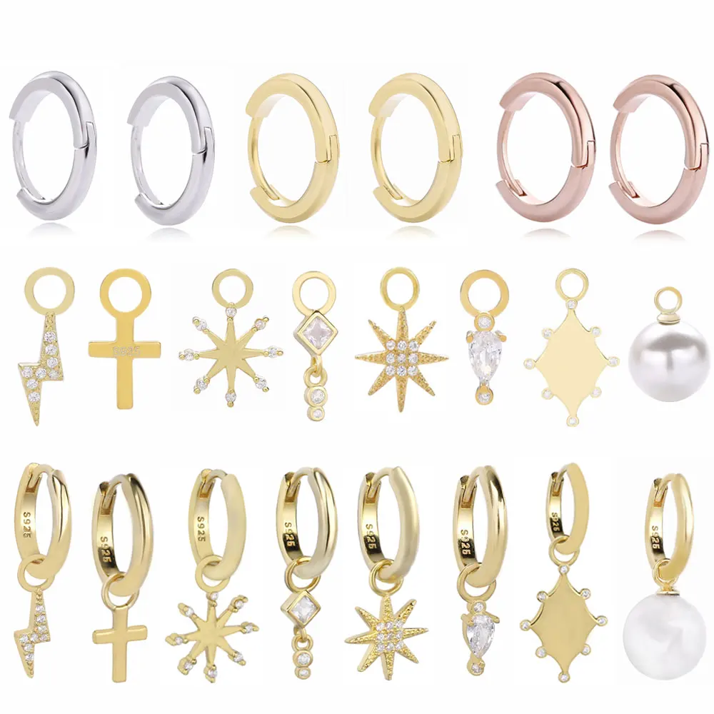 Женские серьги-кольца Moonmory, простые серьги-кольца из стерлингового серебра 925 пробы с золотыми молниями и снежинками