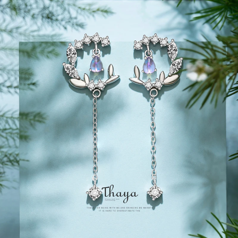 Женские серебряные Подвесные серьги Thaya, из 100% твердого серебра 925 пробы с цветком и кристаллом, в подарок
