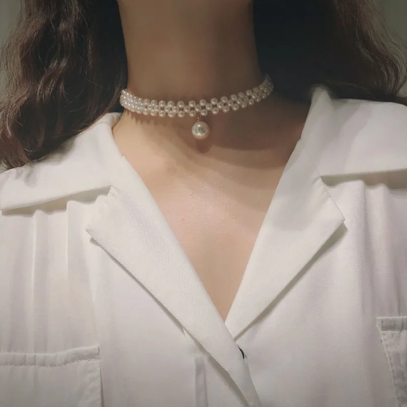 Винтажное ювелирное изделие, ожерелье, Подвеска для женщин, 925 серебро, Пресноводный Жемчуг, короткое колье, ожерелье, ключица, цепь, хорошее ...