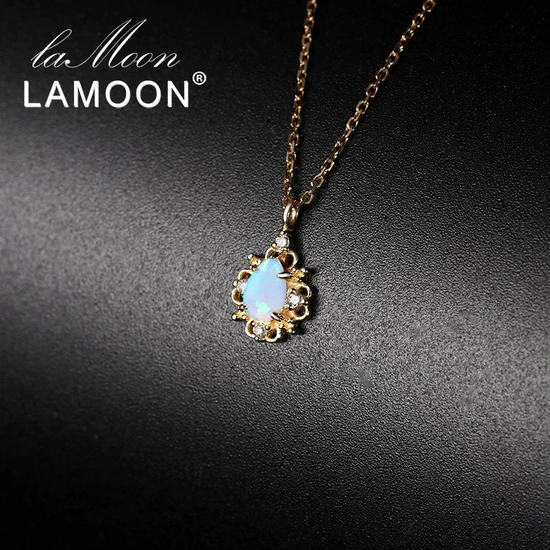 LAMOON, Серебро S925 пробы, Oct, камень рождения, опал, покрытие 14 к, желтое золото, ожерелье, хорошее ювелирное изделие для женщин, подарок для мамы, ...