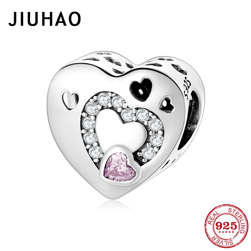 Модные женские браслеты Pandora из стерлингового серебра 925 пробы с полым сердцем и розовыми чешскими бусинами, ожерелья DIY, серебряные ювелирные изделия