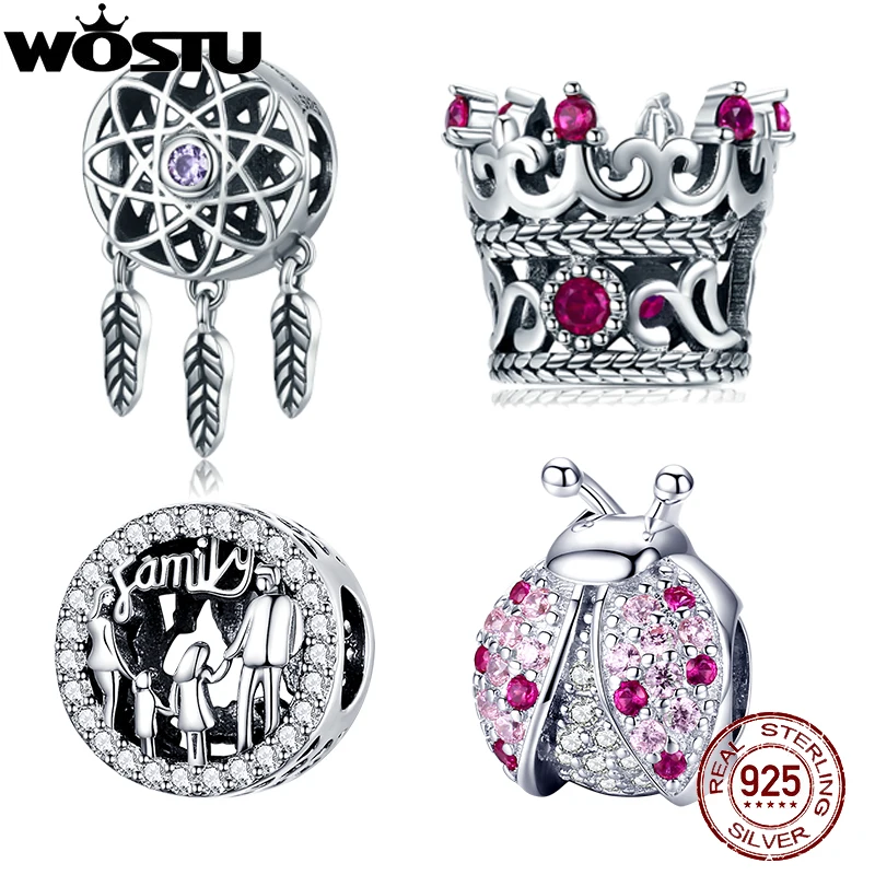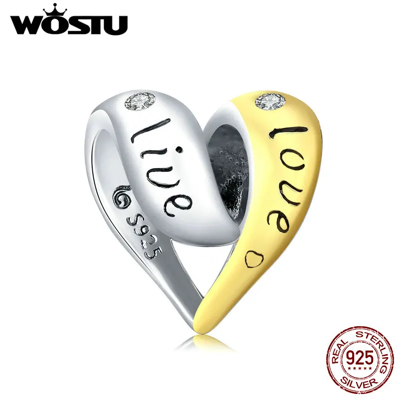 WOSTU настоящее сердце Любовь Шарм 100% Серебро 925 пробы Кулон CZ Золото бисера Подходит оригинальный браслет ожерелье Свадебные ювелирные изделия CTC227