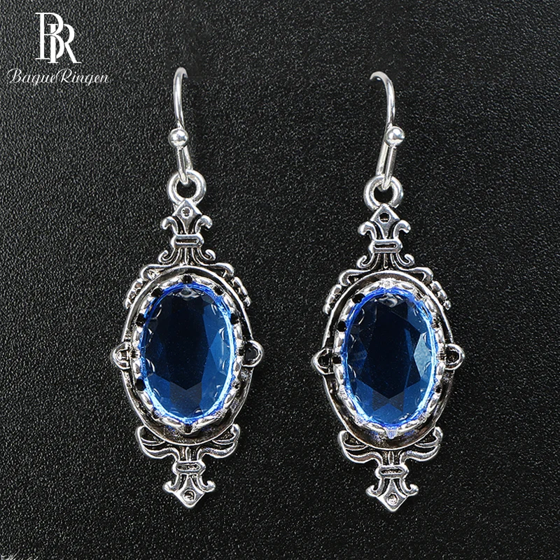 Bague Ringen, роскошные серьги с аквамарином из драгоценных камней для женщин, Ретро стиль, тайское серебро, 925 ювелирные изделия, женские вечерние серьги, опт