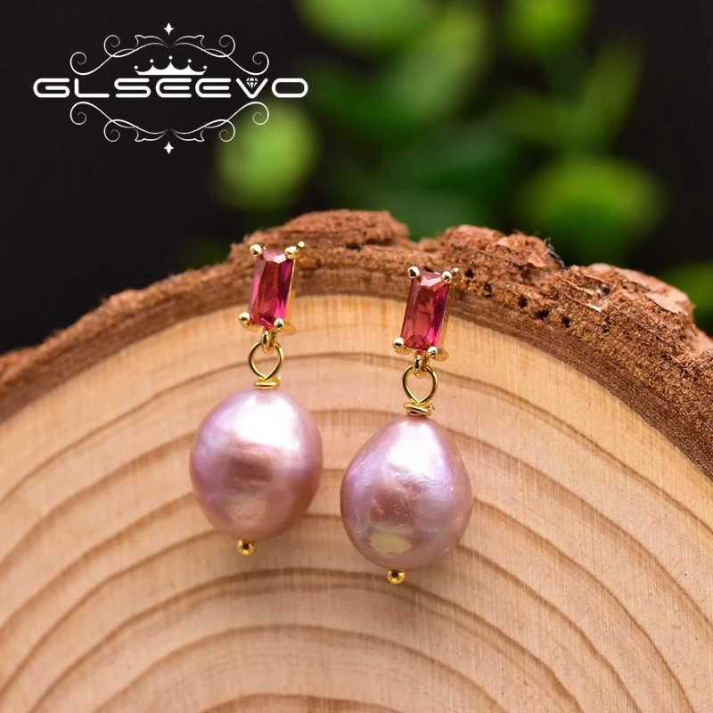 GLSEEVO круг барокко жемчужные Висячие серьги для женщин девушка подарок на помолвку или на свадьбу ручной работы драгоценные ювелирные издел...
