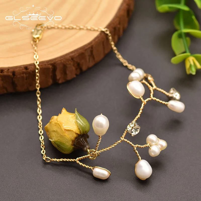 GLSEEVO натуральный жемчуг пресной воды настоящий цветок браслет для женщин Девушка Лето минималистский ручной работы драгоценные ювелирные ...