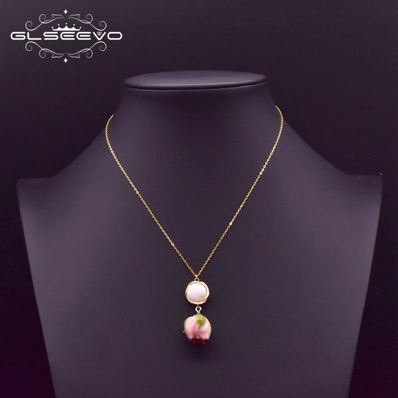 GLSEEVO ручной работы барокко жемчуг 925 серебро настоящий цветок кулон для женщин обручальное ожерелье ювелирные украшения Bijoux GN0134