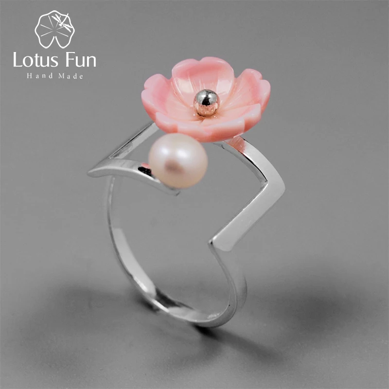 Lotus Fun реальные стерлингового серебра 925 натуральный жемчуг творческой ювелирных украшений цветок кольцо минимализм нерегулярные кольца дл...