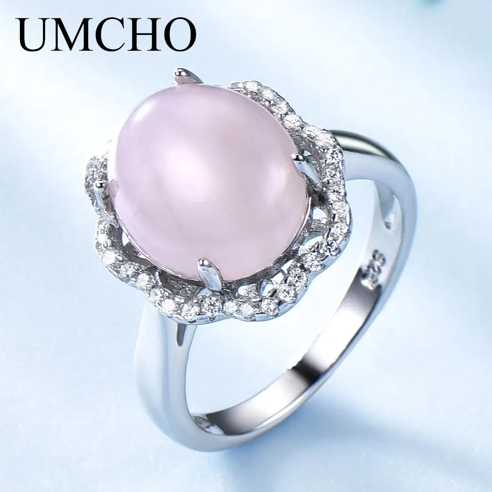 UMCHO натуральный розовый кварц кольца твердые реальные 925 пробы серебряные ювелирные изделия кольца из розовых драгоценных камней для женщи...