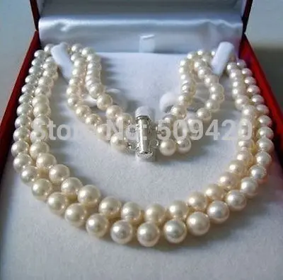 ~~ W & O653 двойной Strand 7-8 мм akoya морской жемчуг ожерелье 17-18"