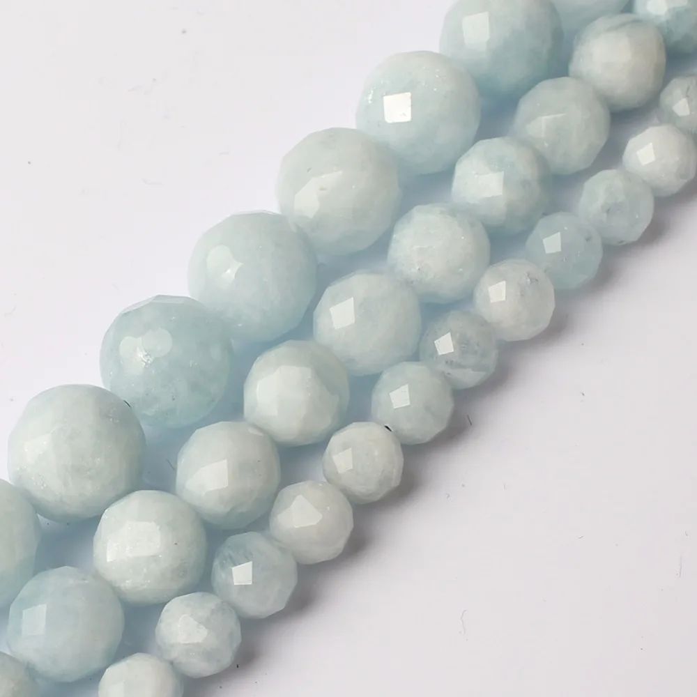 Высокое Качество Граненый голубой Aquamarin Круглые бусины для изготовления ювелирных изделий Натуральный камень бисера Fit DIY Цепочки и ожерель...