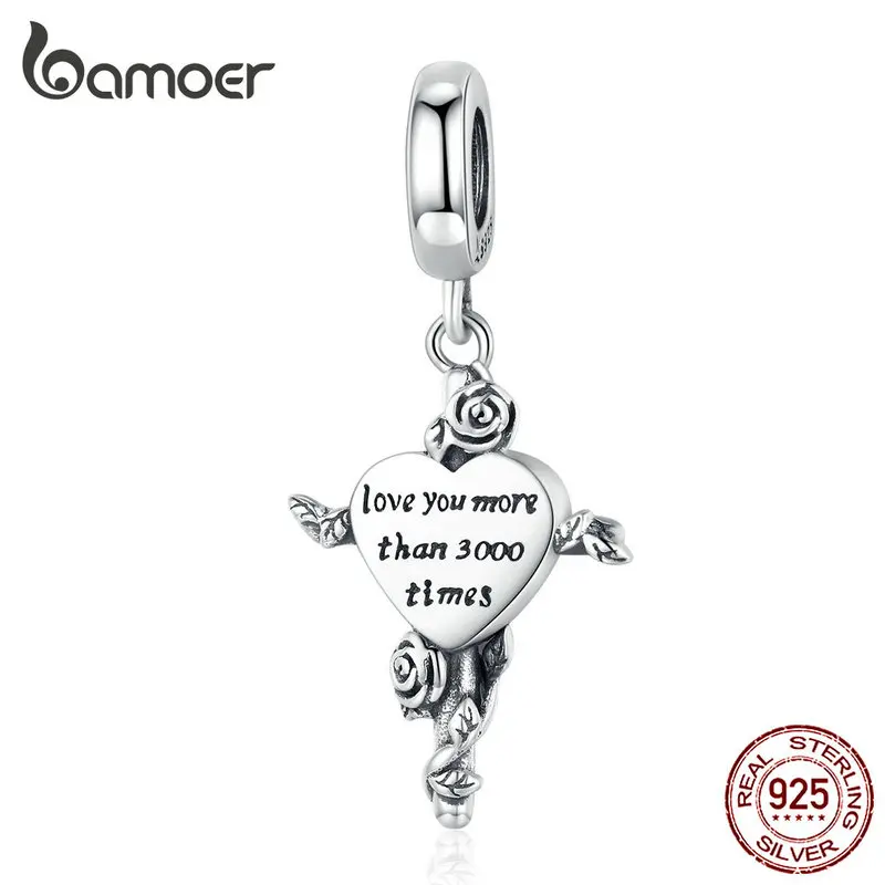 Bamoer крест с подвеской в виде сердца розы, серебряный 925 оригинальный браслет и ожерелье, подарок для дочери, SCC1321