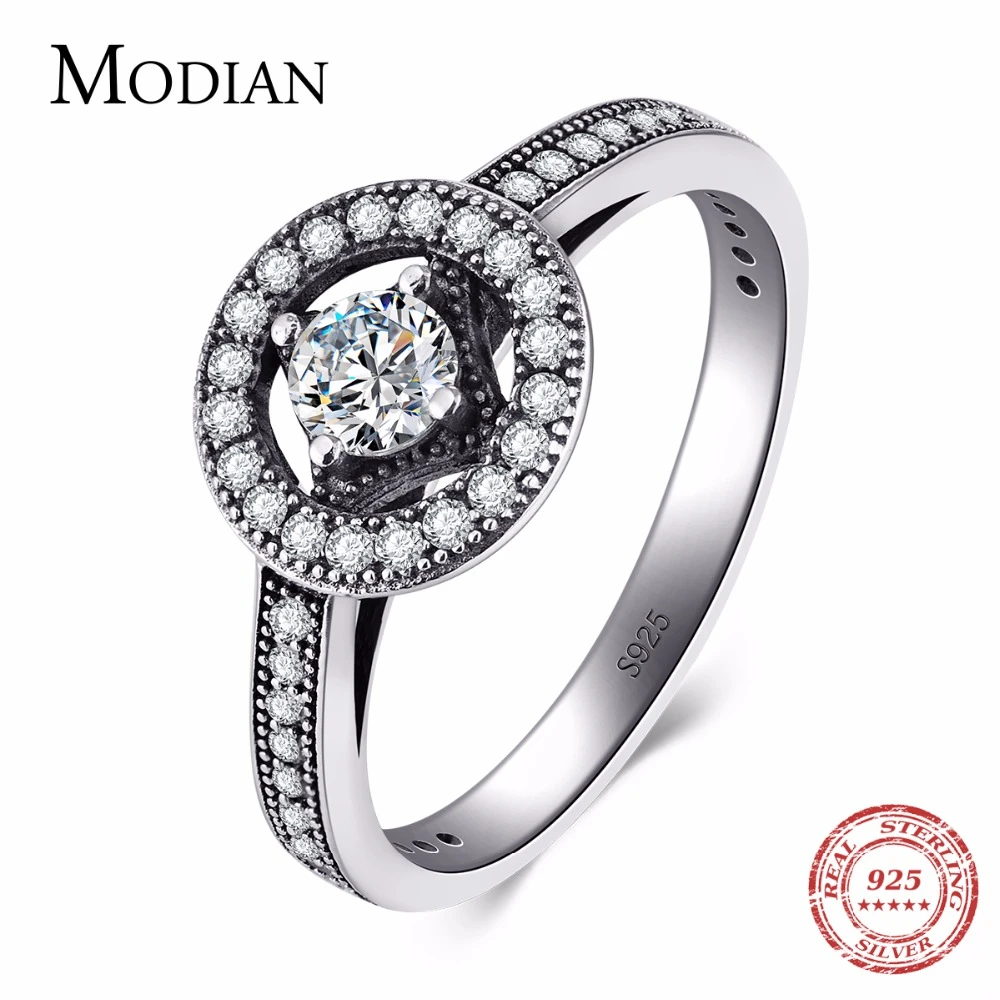 Женское Винтажное кольцо Modian, кольцо из чистого кубического циркония, классический дизайн, 100% подлинное серебро 925 пробы, модные ювелирные изделия
