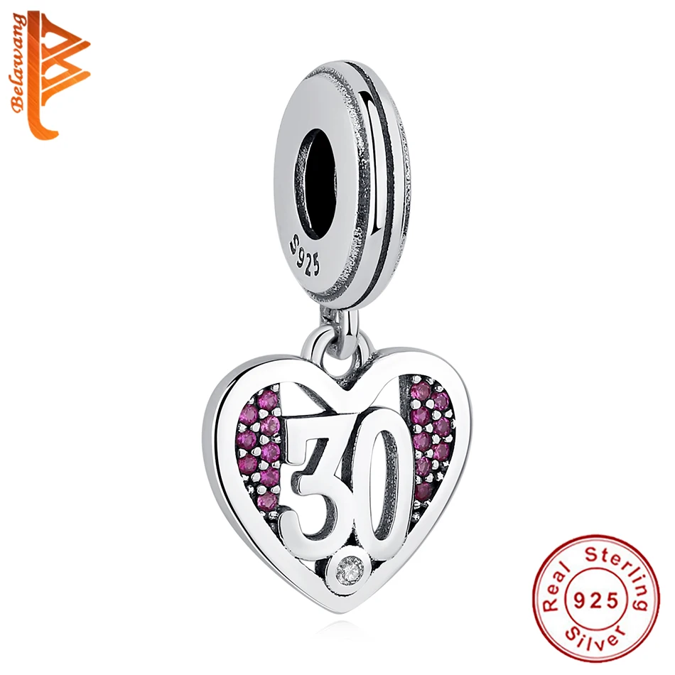 Европейский белаванг 100% стерлингового серебра 925 Сердце 30 лет циркониевые бусины fits дизайнерские браслеты кулон для женщин DIY ювелирные изд...