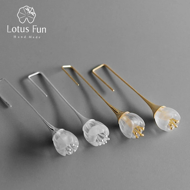Lotus Fun реальные 925 Серебро Природный кристалл ручной дизайнер ювелирных украшений Нежный Свежий цветок серьги для Для женщин