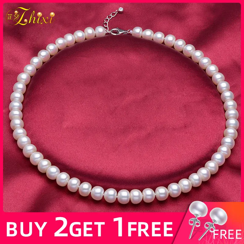 ZHIXI большой жемчужиной Цепочки и ожерелья Fine Jewelry реальные пресноводного жемчуга Цепочки и ожерелья Классический белый Натуральный камень ...