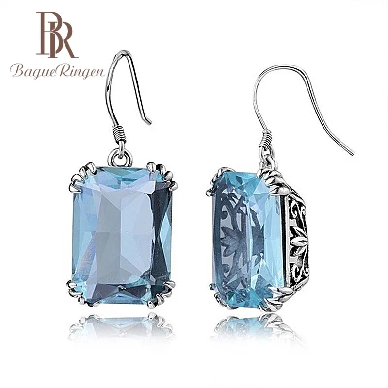 Bague Ringen искусственные цветные стразы синий сапфир висячие серьги 925 пробы серебряные серьги ювелирные изделия для женщин
