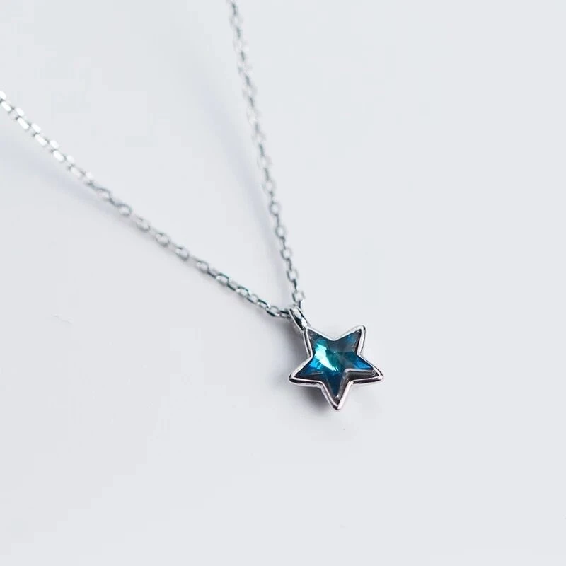 Свежий синий Кристалл Милая звезда мини 925 стерлингового серебра ключицы цепь темперамент Трендовое женское ожерелье SNE154