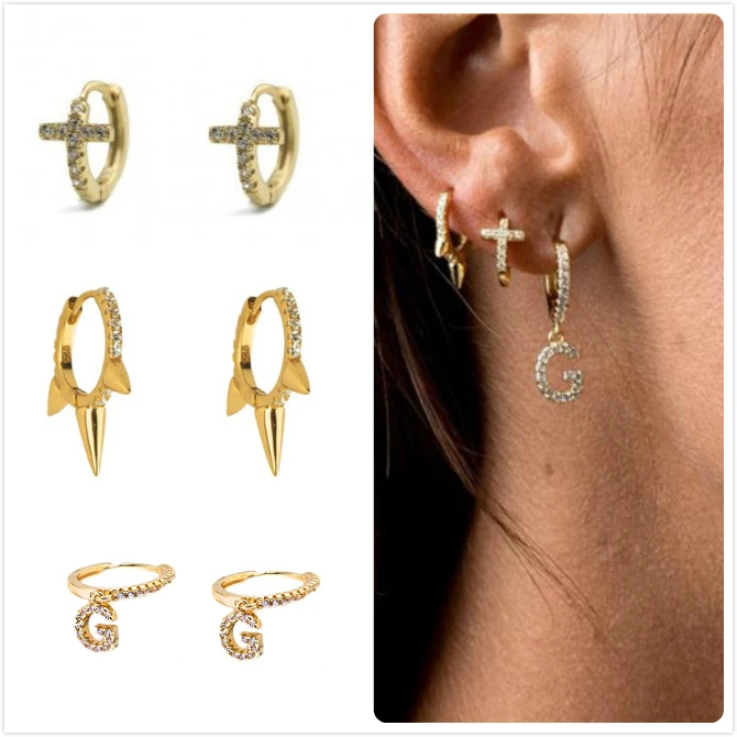 Серьги из стерлингового серебра 925 пробы для женщин, серьги-кольца с цирконом, золотые маленькие серьги для пирсинга костей, серьги с надписью для девушек, R5