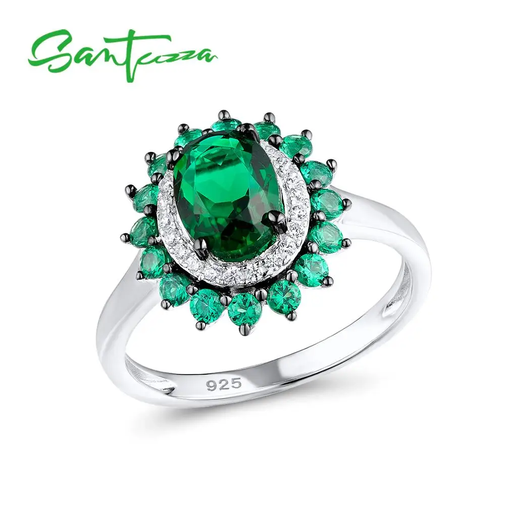 Santuza серебряные кольца для женщин Аутентичные стерлингового серебра 925 роскошные сверкающие овальные зеленые шпинели модные вечерние коль...