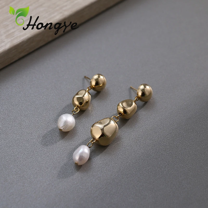 Лучшие женские новые Ins модные свисающие серьги для женщин Роскошные пресноводные жемчужные свадебные подарочные винтажные медные массивн...
