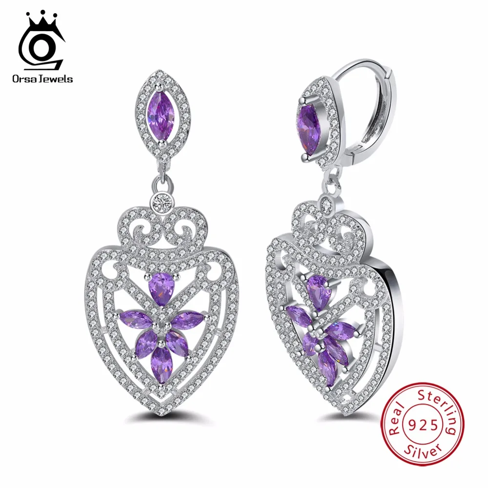 ORSA JEWELS серьги из стерлингового серебра с фиолетовым природным камнем длинные висячие серьги в романтическом стиле для женщин вечерние, подарок SE41