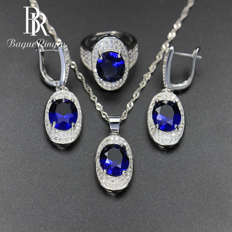 Bague Ringen Серебро 925 драгоценные камни Ювелирные наборы для женщин кольцо серьги ожерелье сапфир рубин Аметист женская свадебная оптовая прод...