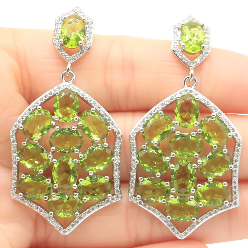64x9 мм элегантный длинный создан настоящий зеленый изумруд CZ женские вечерние серебряные серьги