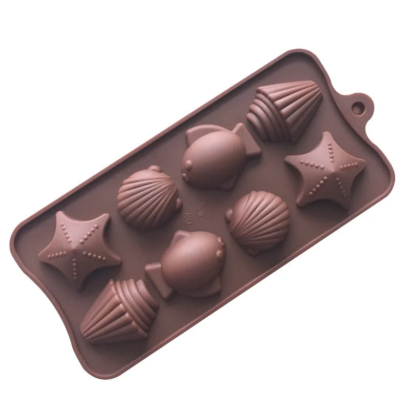 Бесплатная доставка dIY выпечки инструмент рыба + в виде ракушки Форма Силиконовые формы для торта Мыло Плесень шоколадная ледяная форма жел...