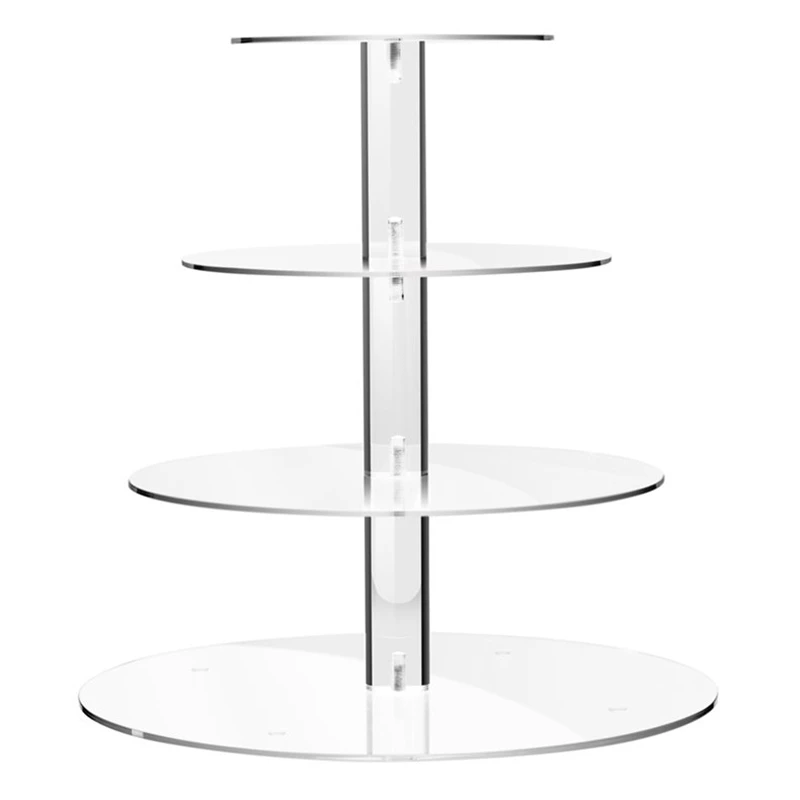 4-ярусный выставочный стенд Круглый акриловый кекс Дисплей стенд, Свадебная вечеринка подставка для десерта дерево башня-четкие Дисплей держатель дерево