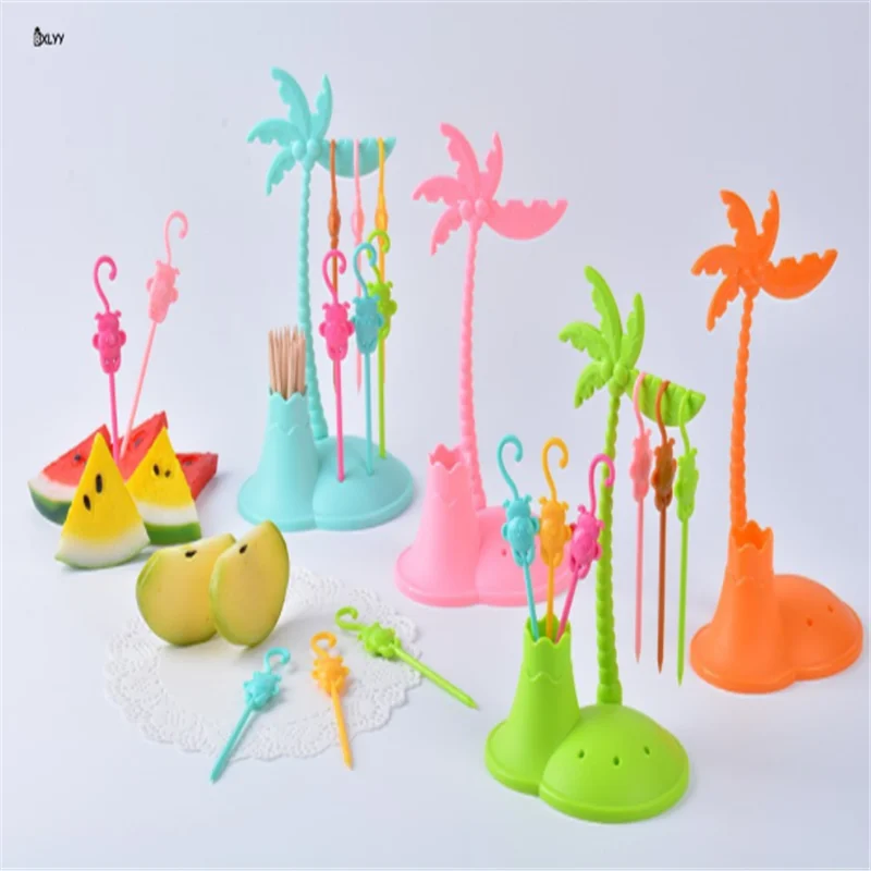 BXLYY 7 шт./компл. творческий набор вилок с кокосовыми фруктами, вилка с обезьянкой для фруктов, бутылочки для зубочисток, кухонный гаджет, аксессуары для украшения дома. 8z