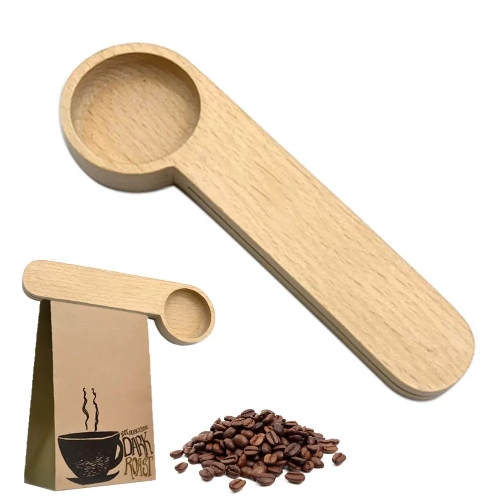 2 в 1 для фасоли, многофункциональный подарок, буковая древесина, Офисная мини безопасная кухня, портативная мерная ложечка для кофе с зажимом для дома