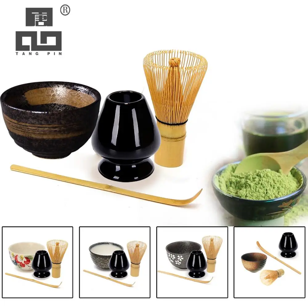 TANGPIN 4 шт./компл. традиционная matcha giftset бамбуковая ложечка венчик Совок церемониальная чаша для маття венчик держатель японский чайный серви...