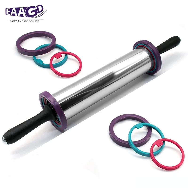 1 шт. Роллинг булавки Регулируемый Вертлюги Из Нержавеющей Стали тесто ролик с 3 съемный толщина кольца для длявыпечки для теста, пицца