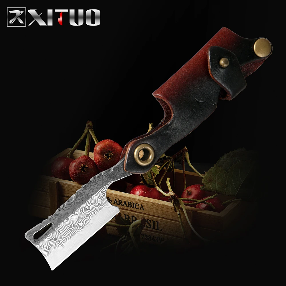 XITUO нож для очистки овощей дамасский складной нож Мини острый бритва открытый кухонный нож шеф-повара ключ карманный нож Изысканная кожаная...