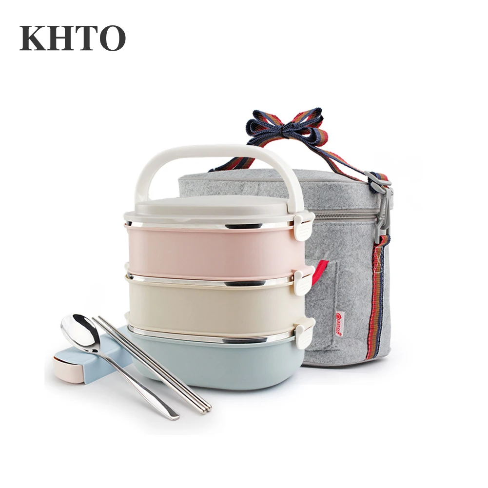 KHTO контейнер для Еда хранения Термальность обед коробок Нержавеющая сталь японский Bento Box Портативный пикник с набор посуды сумка
