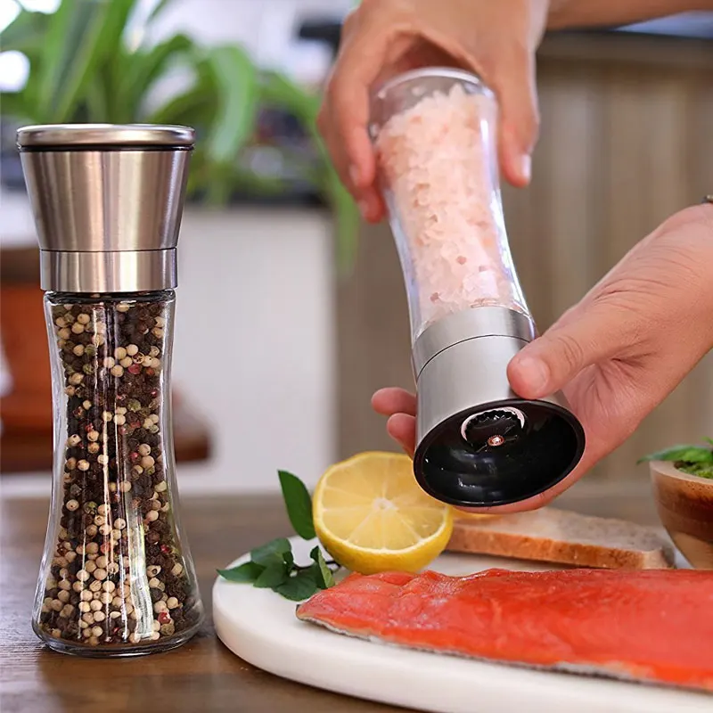 2 шт./компл. соль и набор мельниц для соли и перца-Нержавеющая сталь мельница для перца и с Стекло тела и с Регулируемый Керамический Точильщ...