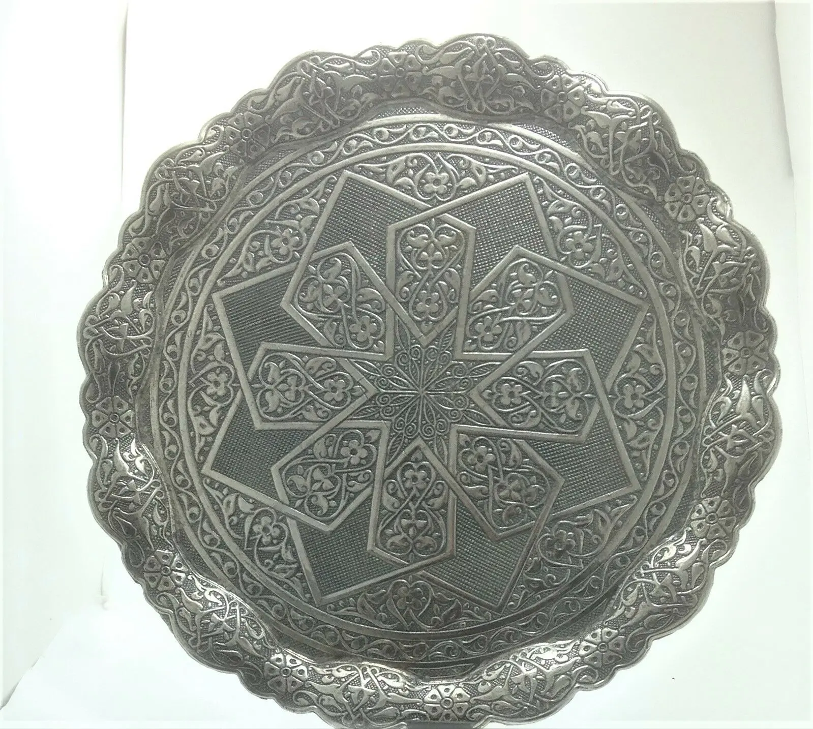 Круглый поднос декорированный металлическими, аутентичными, почуствуйте разницу, редкий дизайн